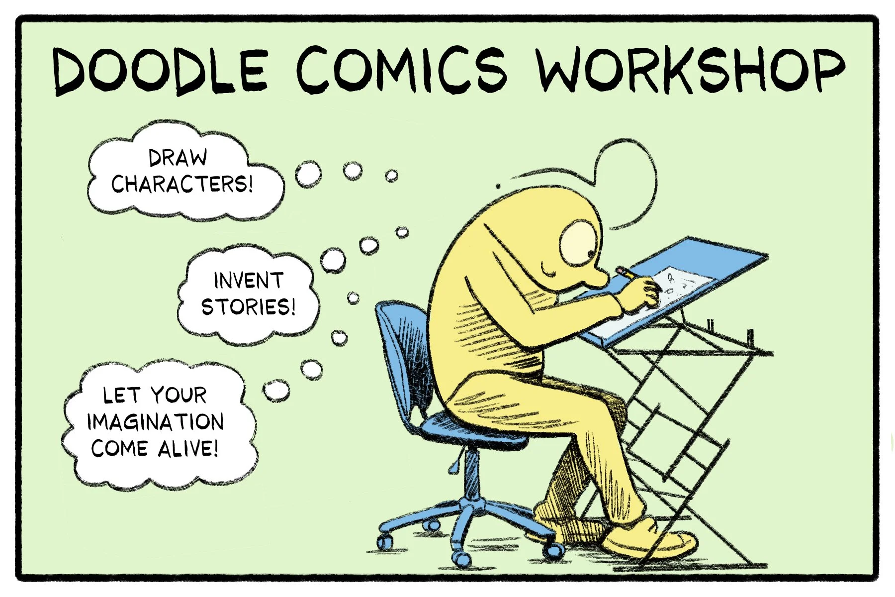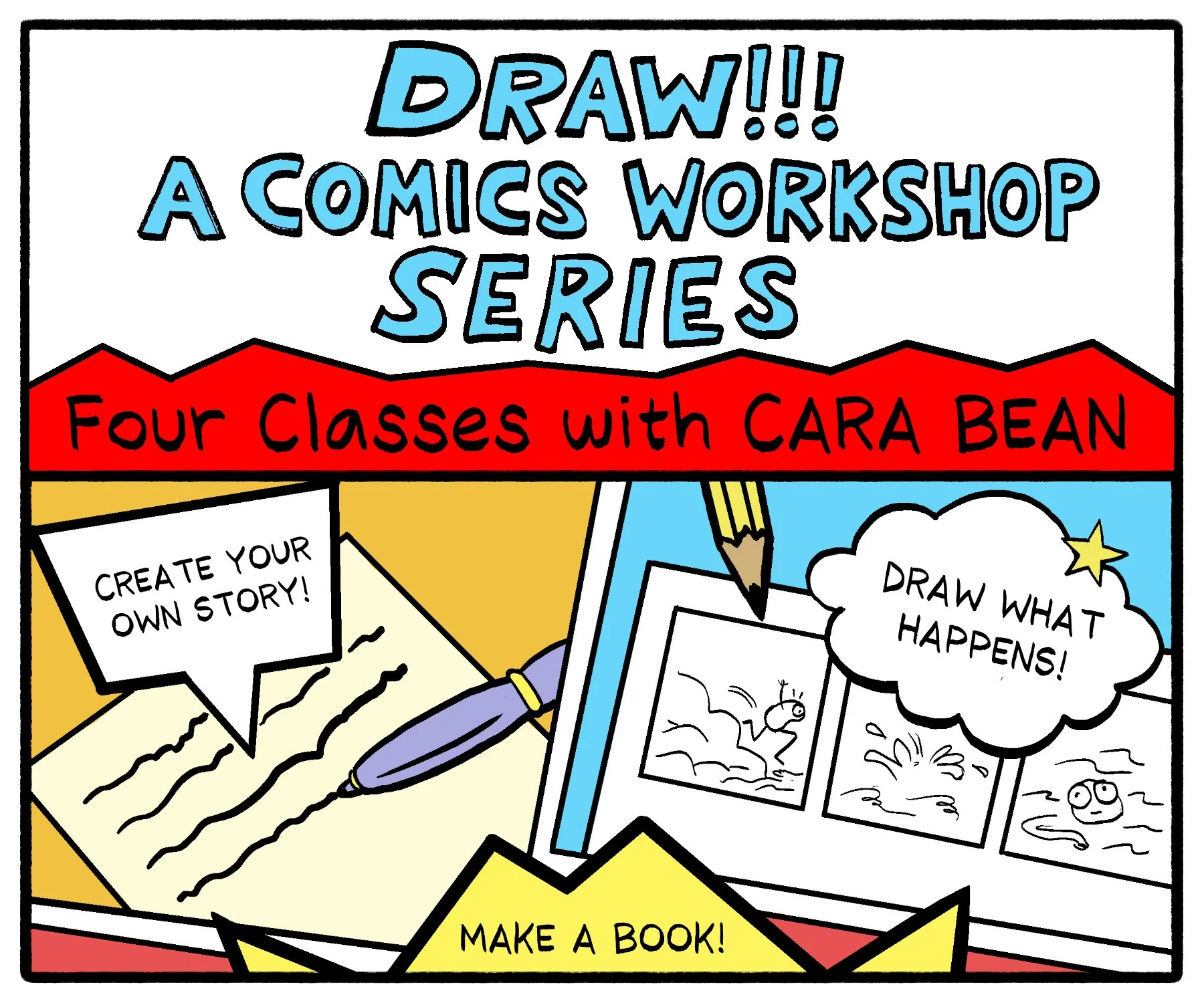 Draw! A comics Workshop Series, Four Classes with CARA BEAN. Create your own story. Draw what happens! Make a book!