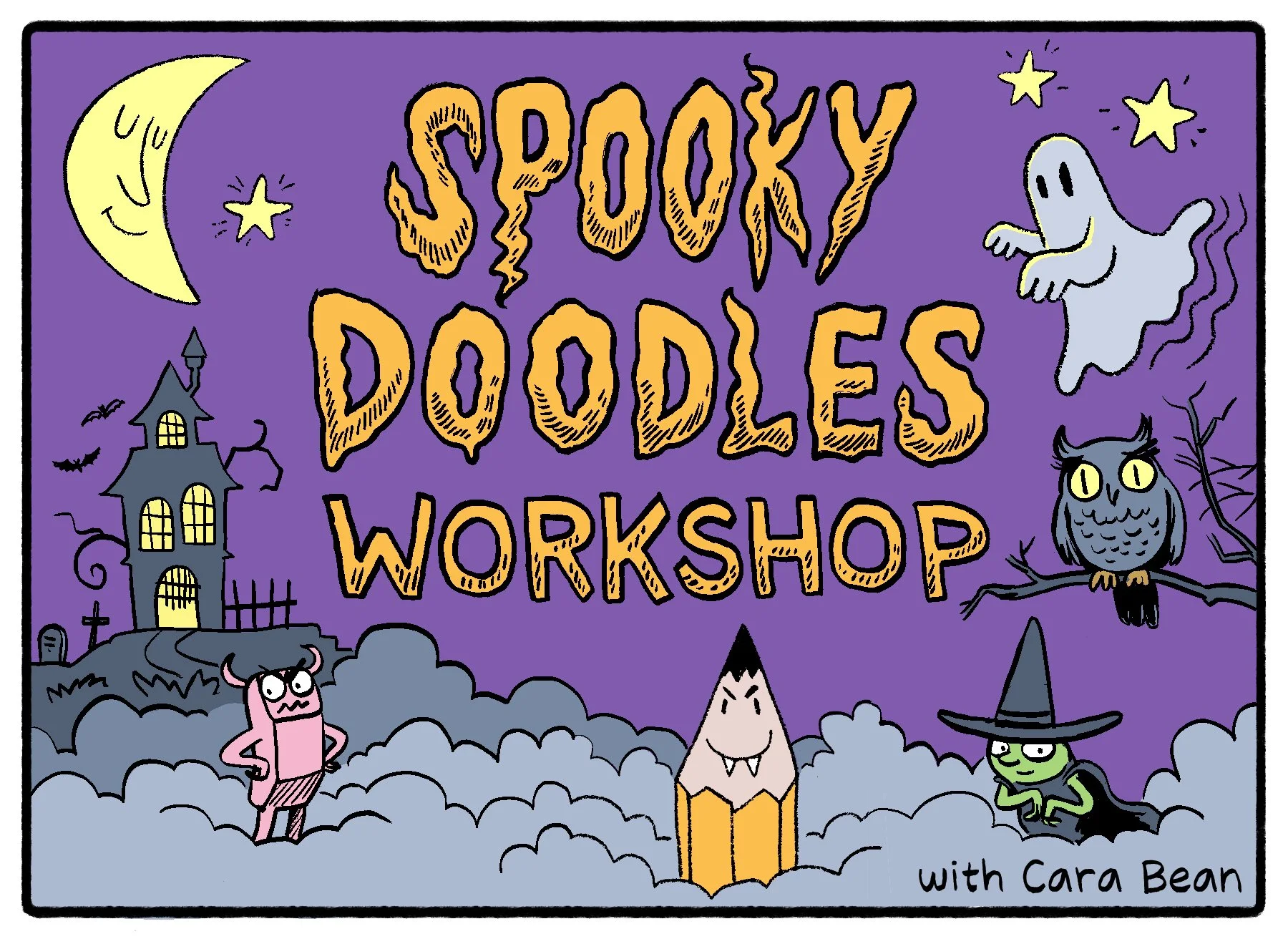Join us for Spooky Doodles, a playful drawing workshop where Halloween fun comes to life on the page! We'll explore eerie imagery, sketch silly monsters with big googly eyes, and invent surprising characters that pop out from your imagination. Whether you're drawing ghosts in roller skates or pumpkin-headed creatures with secret powers, this session is all about creativity, laughter, and a little bit of spooky magic.